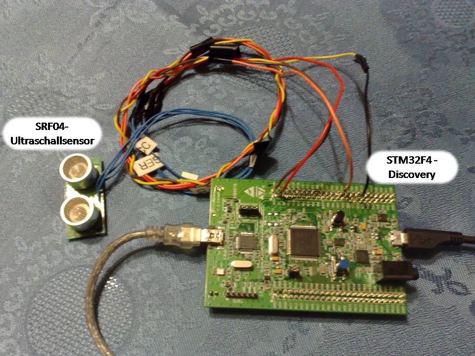 STM32F4 Discovery wird laut der Portbelegungsplan mit dem Ultraschallsensor verbunden