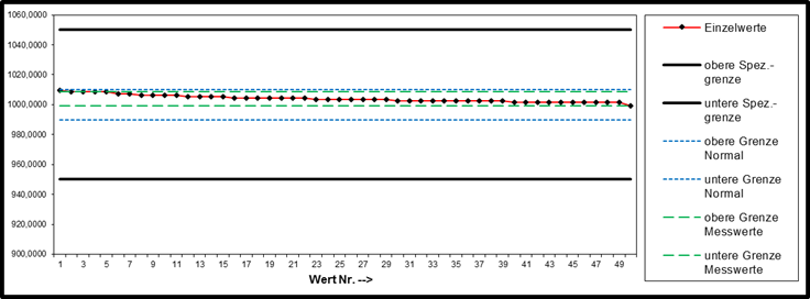 | Prüfmittel | Normal | Merkmal | 1007,4759 | 1050,0000 | 950,0000 | 1010,0000 | 990,0000 | 1008,7833 | 999,2485 | ||||||||||||||||||