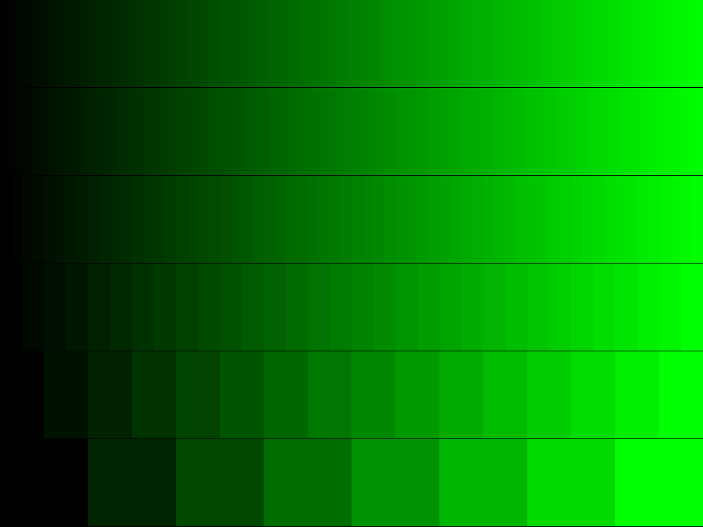 Die Testbilder sind 1024x768 Pixel und enthalten Farbverläufe mit 8, 16, 32, 64, 128 und 256 Abstufungen, jeweils 128 Pixel hoch.