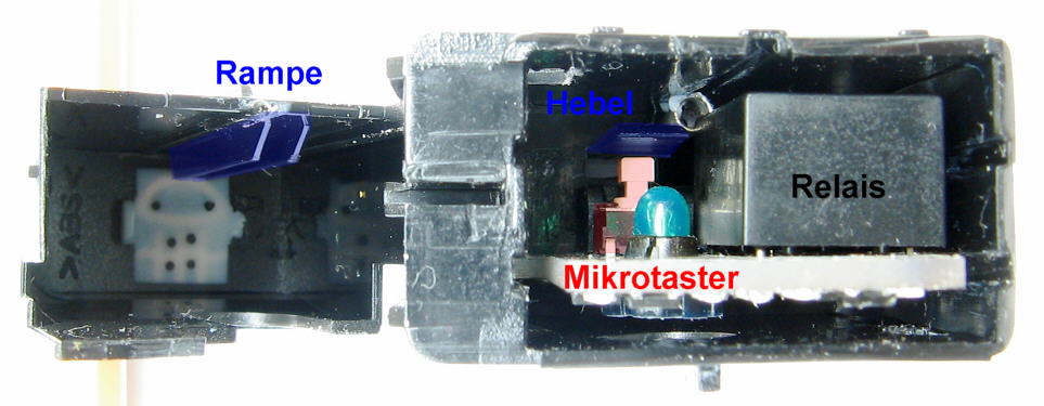 Funktioniert der Schalter nicht wie er soll, hat einen Wackelkontakt oder schaltet sich manchmal die NSL mit dem Abblendlicht mit ein, kann eine der Lötungen gebrochen sein: