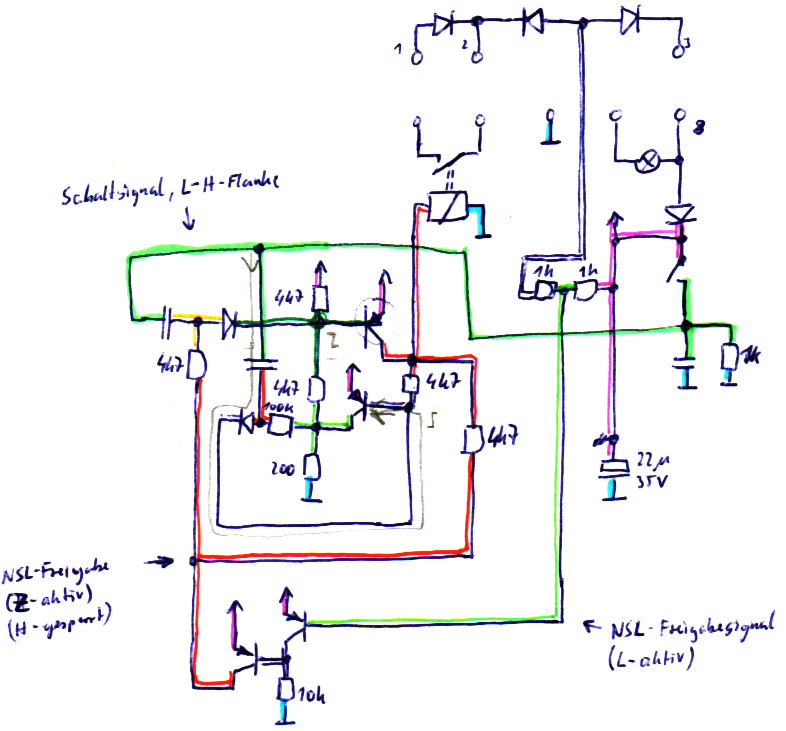 ebenfalls die Ansteuerleitung für das NSW-Relais (r-l), die zum Schalten an