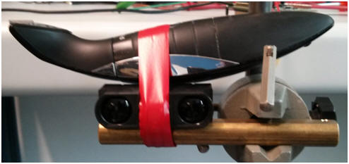 Abbildung 1: Halterung mit Sensor und Rasierer für Vibrationsmessungen