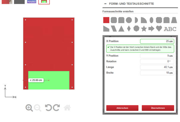 Bestellung der zwei Acrylplatten auf Expresszuschnitt