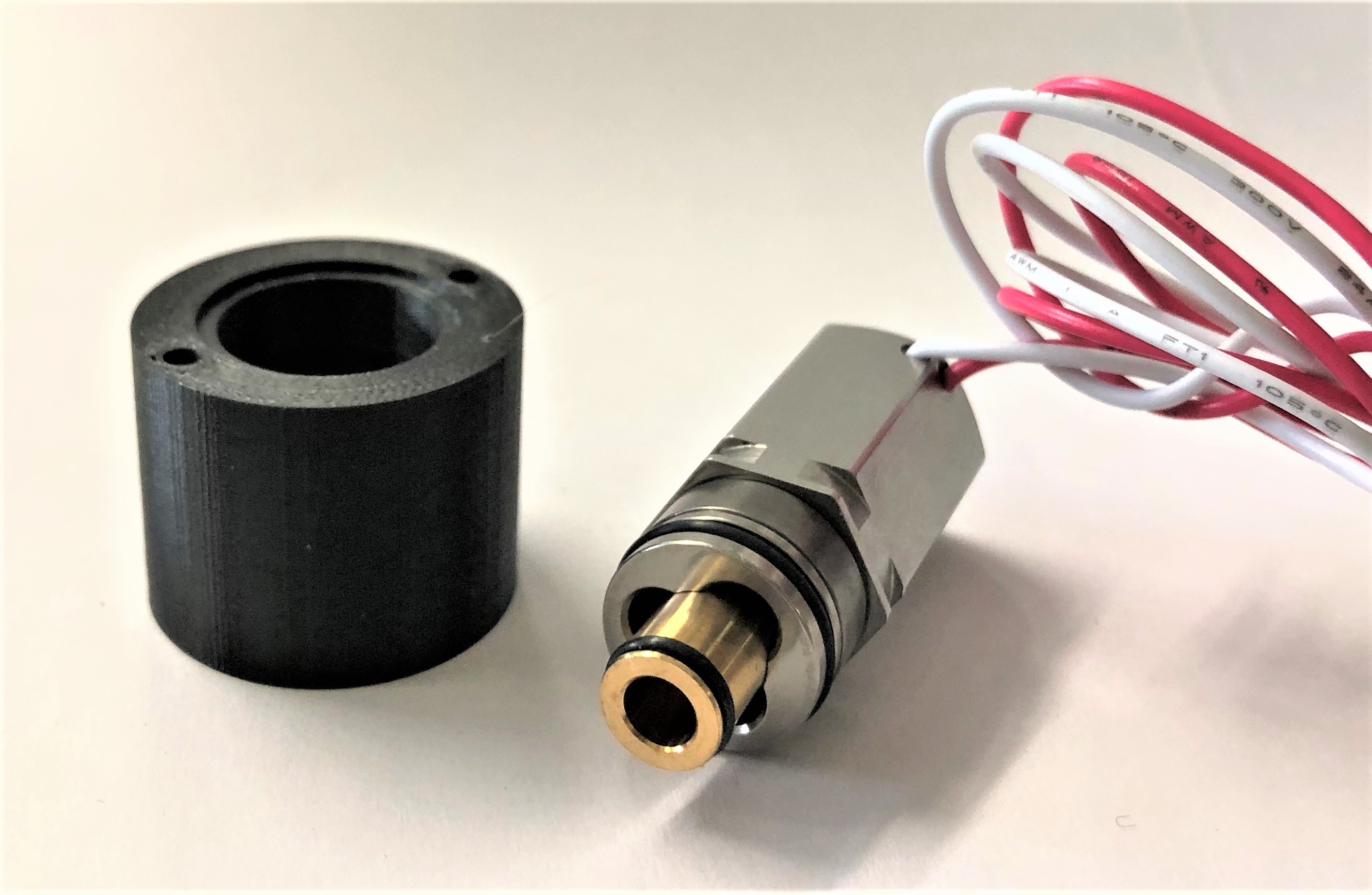 Der erste Probedruck des Verbindungsstück 2 aus PETG war von außen ein sehr präziser Druck, doch im Inneren befanden sich abstehende Filamentreste, die eine undichte Verbindung der konischen Passung zur Folge haben könnte. Bei einem Dichtigkeitstest zeigte sich außerdem, dass das Bauteil undicht war. Durch den Filamentwechsel zu PA und den dazu angepassten Einstellungen konnte ein Verbindungsstück gedruckt werden, das nicht nur dicht ist, sondern auch Innen eine glatte Fläche besitzt. Der Volumenstromsensor fügte sich perfekt mit dem Bauteil zusammen. Der Download der *.gcode-Datei zum 3D drucken befindet sich hier. Stopfen