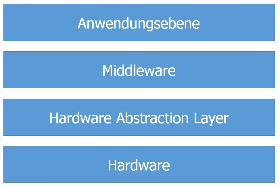 Als erster Ansatz zur Umsetzung des Projekts wird das entsprechende Demoprojekt von STM aus dem STM32CubeFW für die "System Workbench for STM32" verwendet. Das STM32CubeFW ist ein Paket, das zum einen den STM32CubeMX beinhaltet, mit welcher ein Projekt mit Hife eines Wizards neu erstellt werden kann, außerdem ist eine Embedded Software Plattform vorhanden, die von STM je Board-Serie ausgeliefert wird. Sie umfasst die Hardware Abstraction Layer (HAL), die Middleware (mit Betriebssystem RTOS, Grafik usw.) und verschiedene Projektbespiele, siehe Abbildung. Das STM32CubeMX wird im weiteren Projektverlauf nicht verwendet, da auf ein bestehendes Demo-Projekt zurückgegriffen wird, wodurch die Nutzung des Wizards entfällt. (Quelle: UM1713, Doku zu STM32Cube)