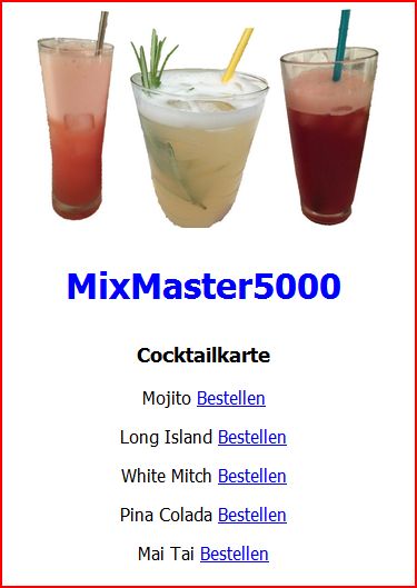 Auf dem Webserver soll eine eigene HTML-Seite angezeigt werden, über die die Cocktails bestellt werden können.