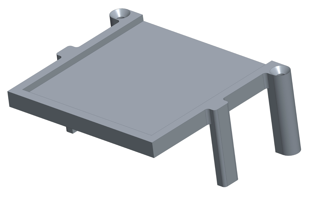 | Um die Verbindung zwischen Relaisboard und der entwickelten Platine mechanisch zu entkoppeln, wird die die Platine auf einem Halter befestigt. Die Größe der Platine beträgt 2x2 Zoll. Der Halter wird mittels 3D-Druck gefertigt. |