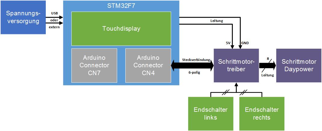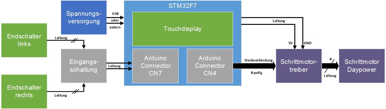 Schrittmotortreiber sowie der Eingangschaltung für die Endschalter entwickelt.