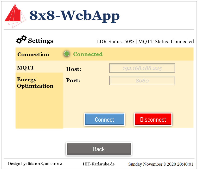 and MQTT respectively. There is also a button enable user to go back to the