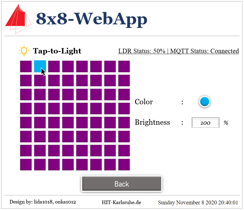 brightness and click any 8x8 buttons that they like. There are LDR