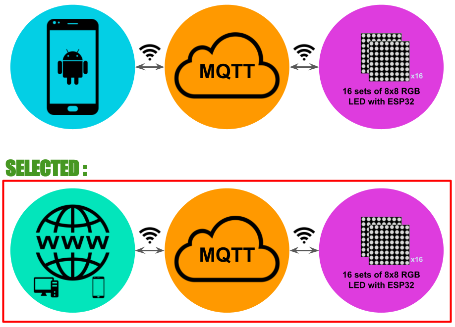 control the sets of 8x8 RGB LED with ESP32. However, mobile apps