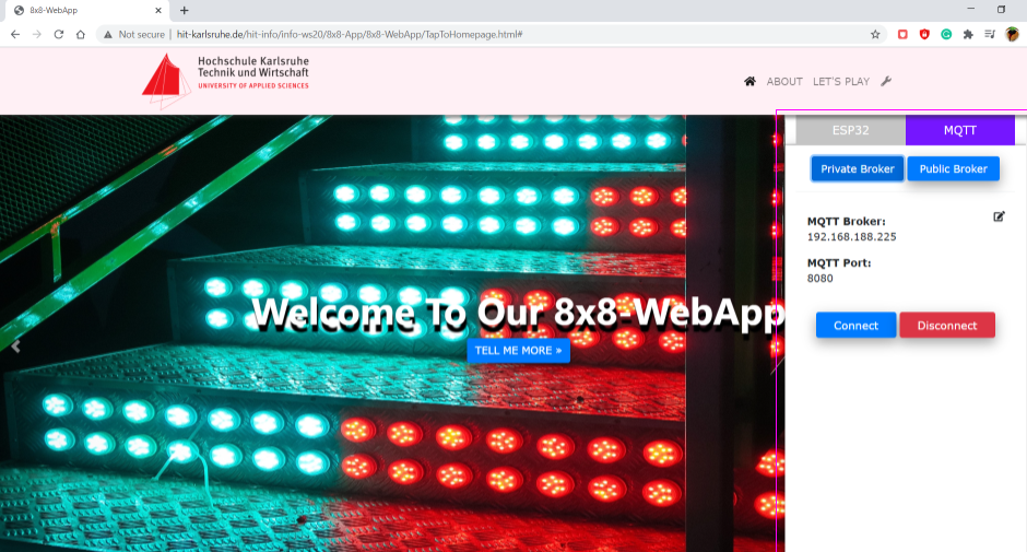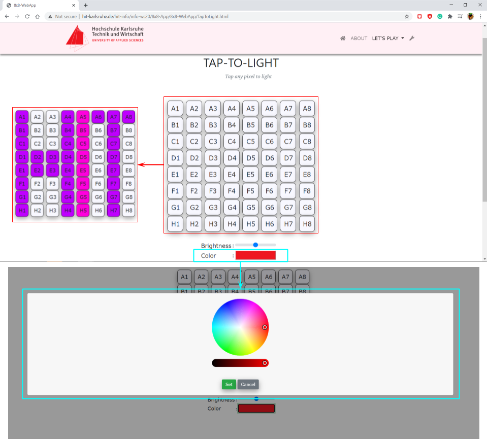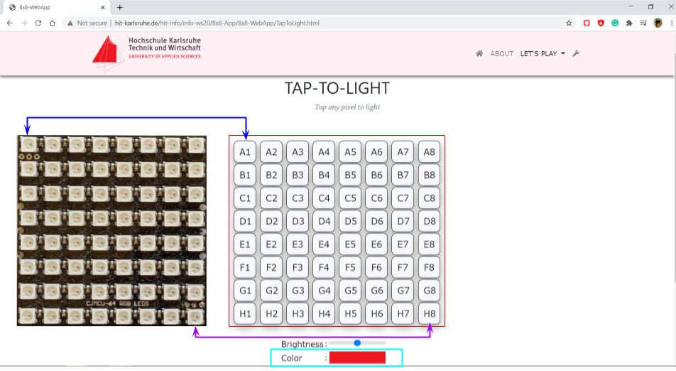 Figure 4.3.2: Tap-to-Light Page with real 8x8 RGB LED