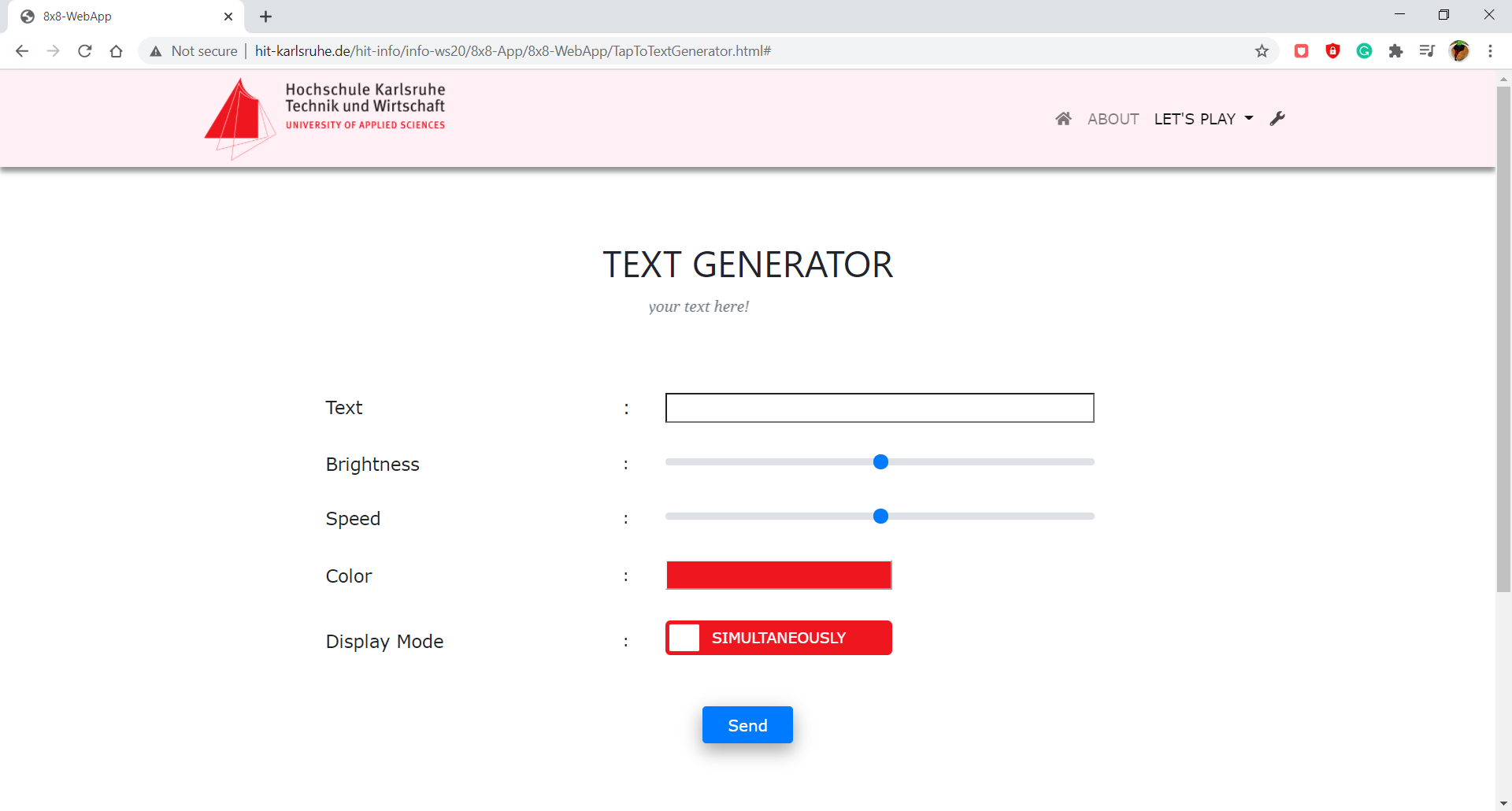 2. Text Generator function: User able to control the 8x8 RGB LED by generating text.