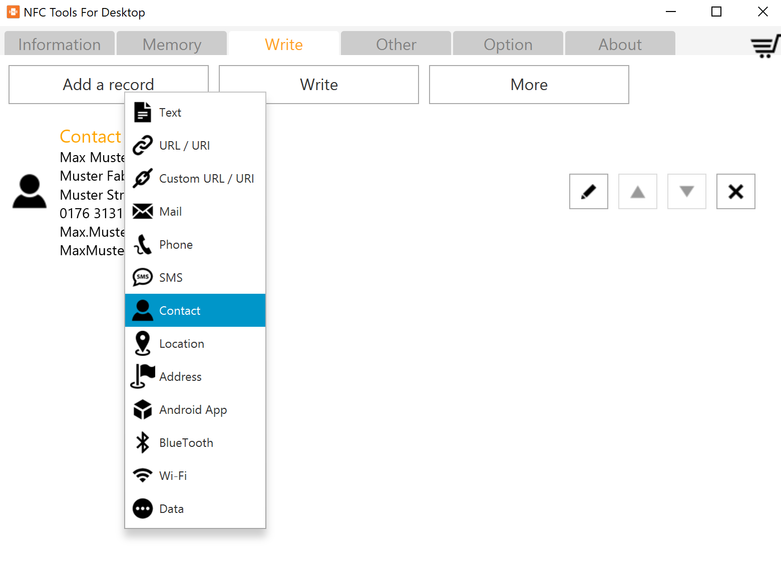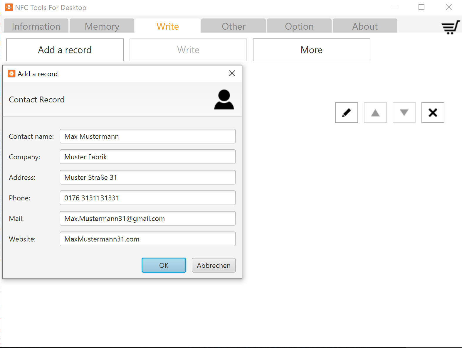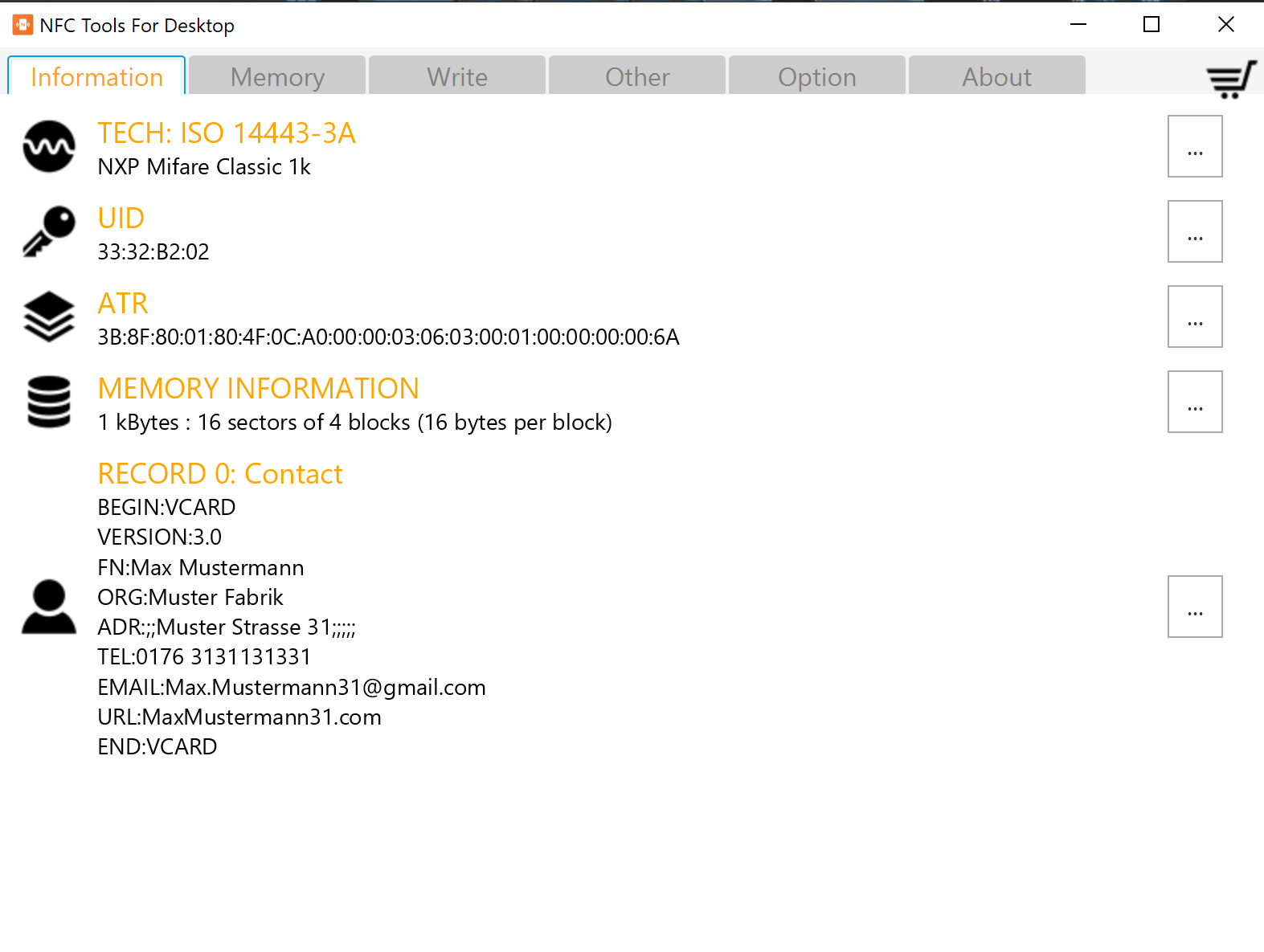 Beschreiben des NFC-Speichermediums (hier Karte).