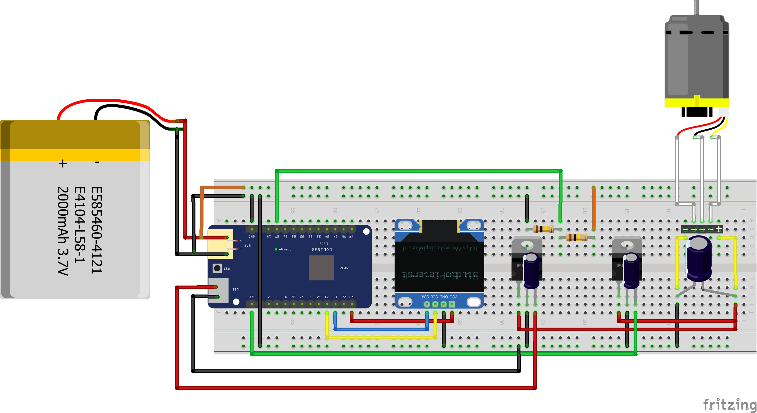 Spannung über ein Micro-USB Kabel an den Lolin32 angeschlossen.