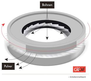 Mahlwerken. Dabei wird ein Scheibenmahlwerk hinter ein Kegelmahlwerk