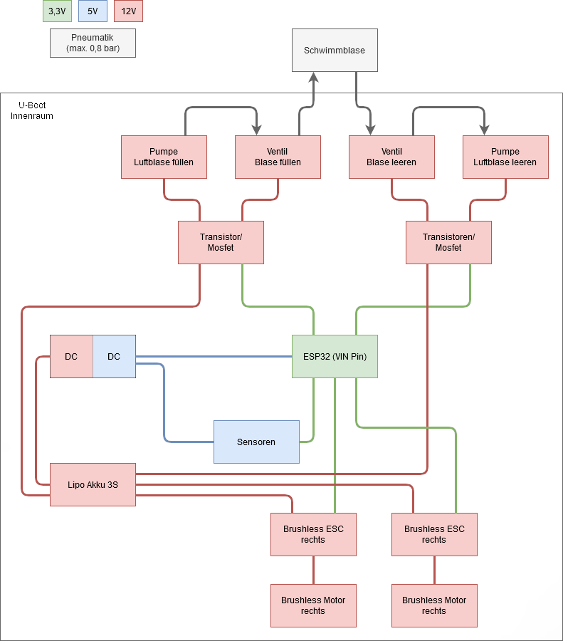 Blockschaltbild aller elektronischen Komponenten sowie Pneumatik